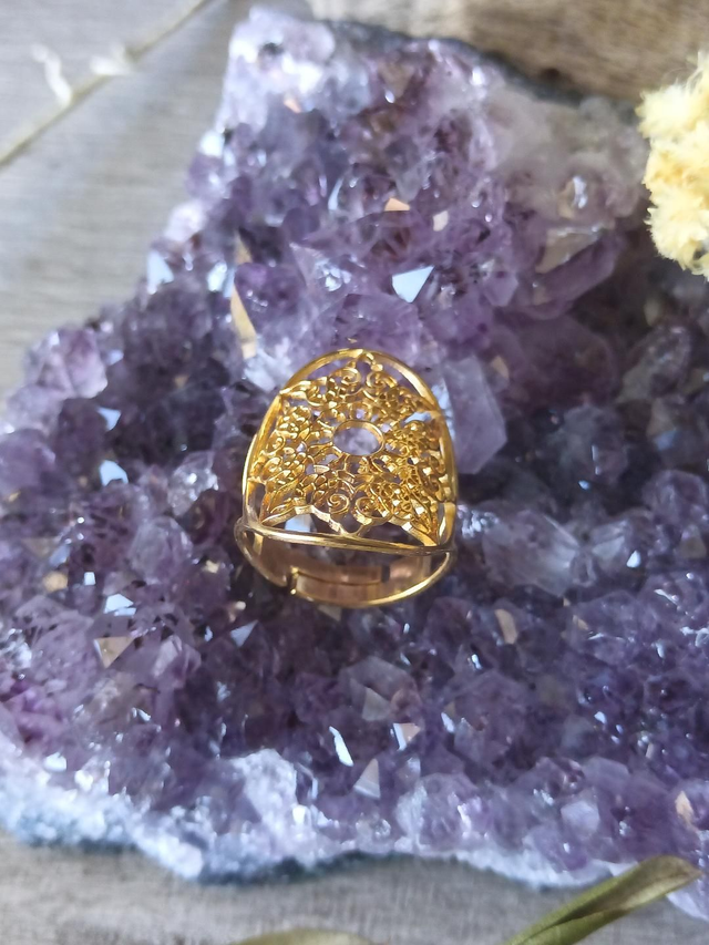 Découvrez notre bague ajustable Mandala en acier inoxydable doré, un bijou zen et raffiné.