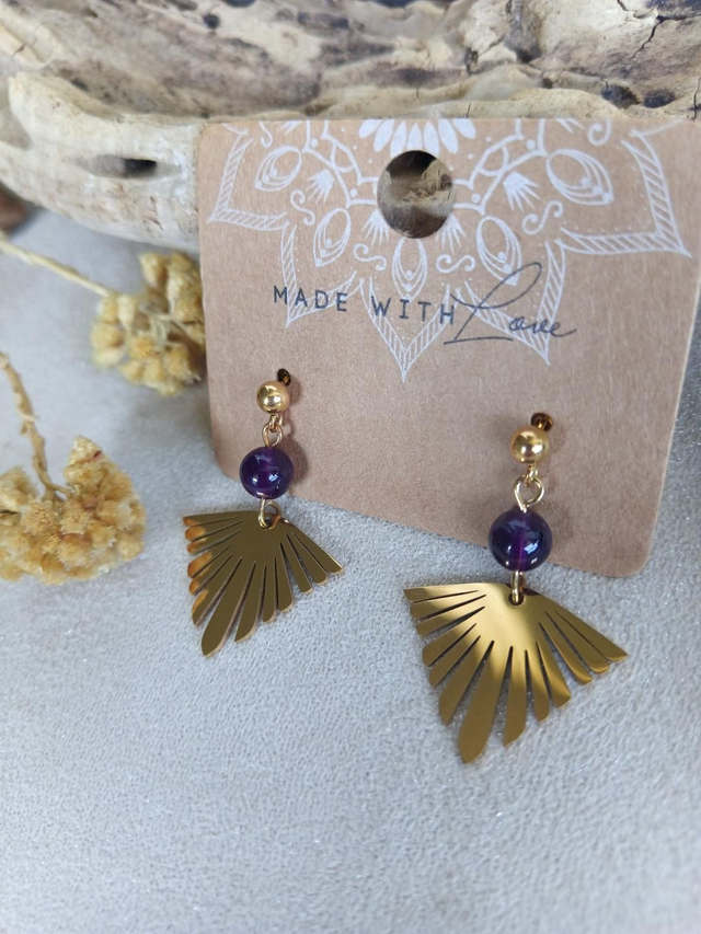 Boucles d'oreilles dorées LYANA Améthyste- Energie et élégance