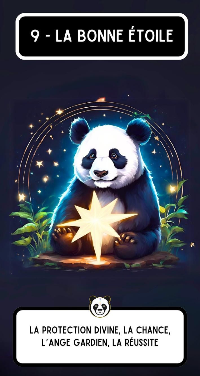 L’oracle L’Éveil du Panda est un jeu divinatoire unique, conçu comme une passerelle entre votre monde intérieur et les messages subtils de l’univers. Chaque carte est une vibration, une invitation à l’écoute, à la douceur et à la sagesse.